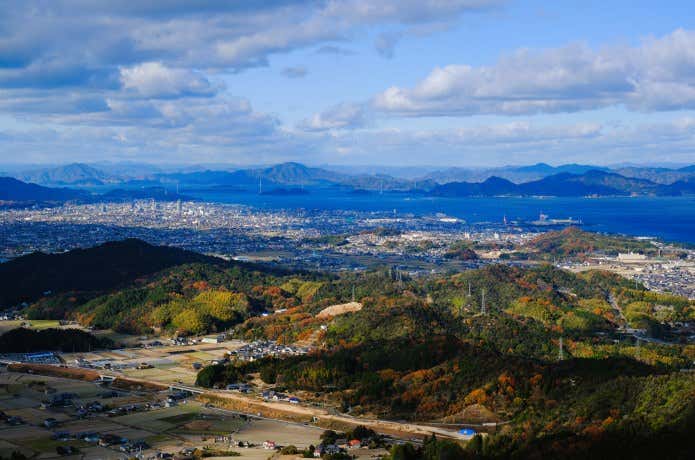 愛媛県今治市と西条市の市境にまたがる世田山(せたやま・339m)は、尾根伝いに笠松山(かさまつやま)まで歩くコースがとにかく最高です。ここからの眺めを初めて目にしたのは真冬のことで、青い瀬戸内海と白い石鎚連峰のコントラストに感動もひとしお。地図と照らし合わせながら地形や海岸線、そして町の様子を、時を忘れて眺めていました。やはり暮らしたことのない土地の風景は、とても興味深い!