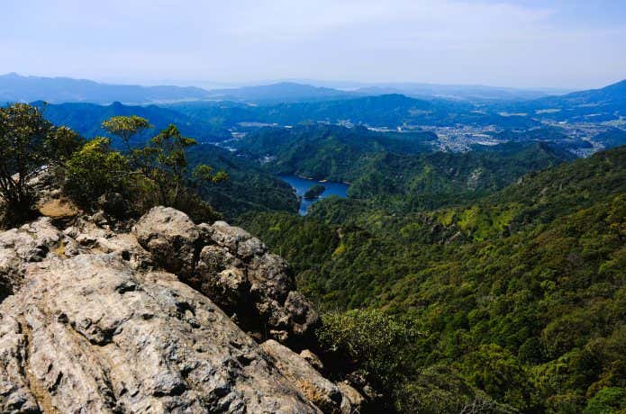コースはいくつもあり、山中には岩屋があったり、滝があったり、巨岩に登ったりと、見どころ満載。しかも山頂からの大展望は一見する価値ありです。とくに冬はすっきりした大展望が期待できるとともに、九州の低山らしく早春の空気を先取りして味わえるのも嬉しいポイント。