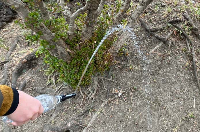 噴射口は1つ穴タイプ。コンパクトながら水圧はしっかりしていて、狙ったところに当てやすく、水の消費量を抑えられるのも好印象。パッケージもキュートなので、アウトドア好きへのちょっとしたギフトにもおすすめです。