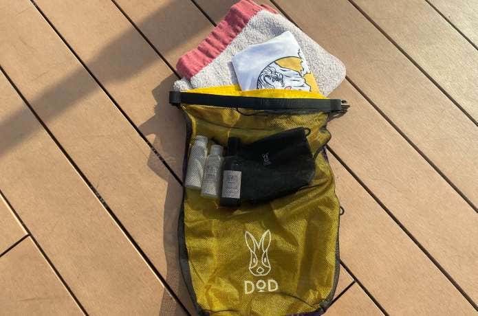 スタッフバッグとしてザックにそのまま入れて、お風呂のときは手提げにするなど、シーンに合った使い方ができるのがうれしいところ。こちらも洗濯ネットに入れて、そのまま洗うことができます。