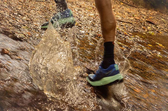 非防水モデルと遜色ない自然なフィット感で、トレイルランニングはもちろん、ファストハイクや街履きとしても活躍が期待されます。