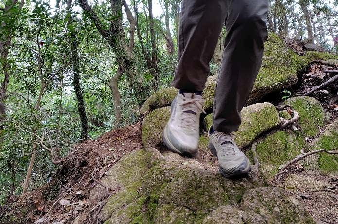 岩場の登り下りも問題なくこなせます。この感覚に慣れてくると、安心して足を出せるようになり、より安定した歩行が可能になります。