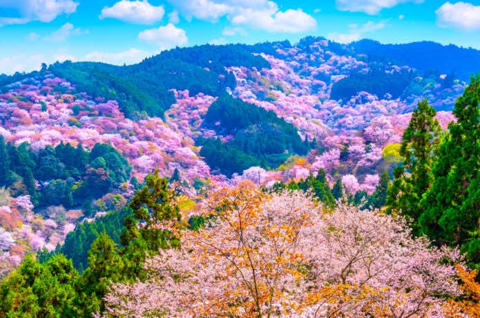 ポストカードの様にびっしりと咲き誇る桜はまさに圧巻!一度本物を見ると圧倒されること間違いなしです。毎年リピートする方も多数で、遠出して観に行く価値はあります。雨の後にガスがかかった桜もまた幻想的な風景になるので、様々な表情を楽しむことができますね。この春は吉野山に出かけてみましょう!